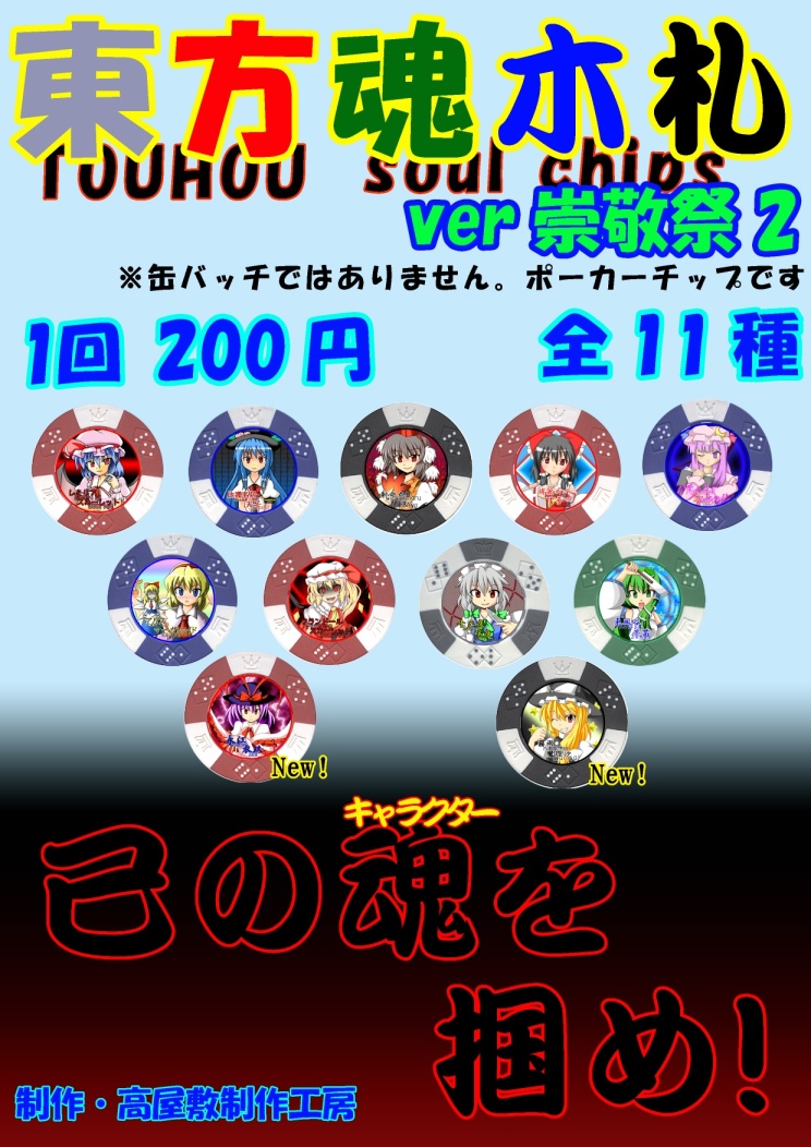 ver崇敬祭2としまして、崇敬祭2で頒布しました衣玖・魔理沙を新たに加えて全11種での委託です。